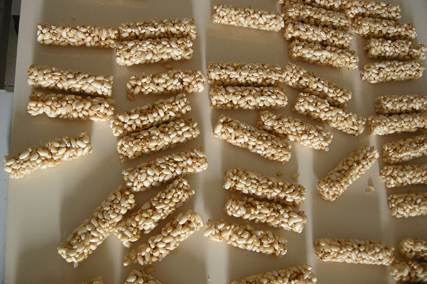 - SMC646成型機出產小米花棒,成型機+理料線+包裝機(圓形米花糖機器,圓柱米花糖裝備,米花糖流水線,谷物棒出產線)