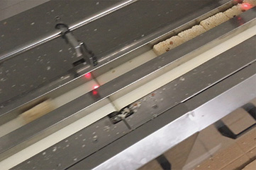 - SMCF-650切塊機出產金黃沙琪瑪, 客戶的現場, 切工致齊有序(沙琪瑪切塊機,中國式小吃,都城沙琪瑪,膨化食物分切機)